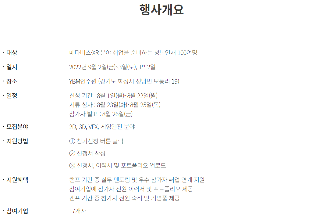 2022 메타버스 콘텐츠 리쿠르팅 캠프 2022/09/02